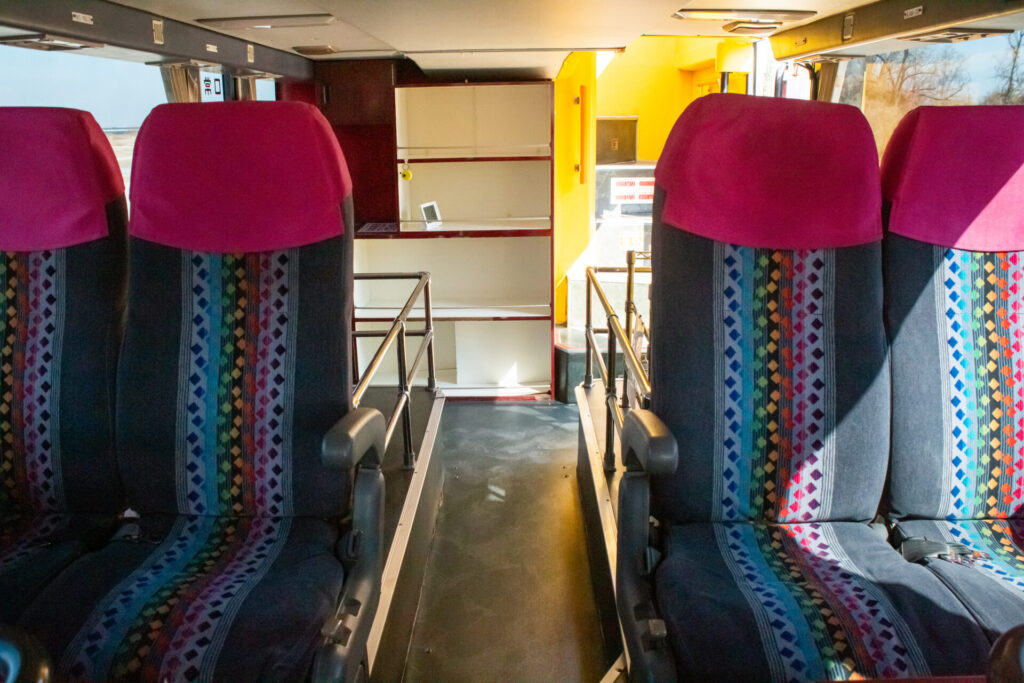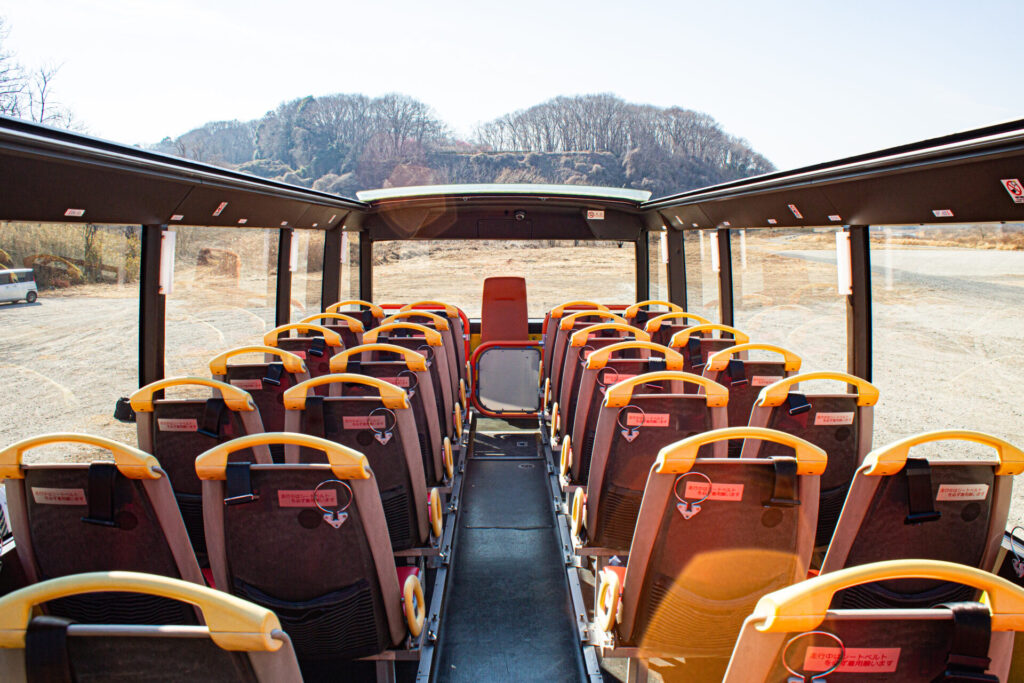 2階席はオープントップ改造時にプラスチックのシートに交換されています。