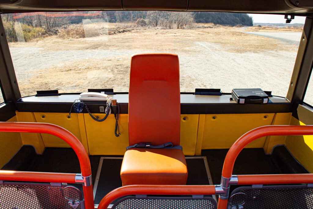 ガイド席には、案内用のマイクと運転席とやり取りをするためのインターホンが備わります。