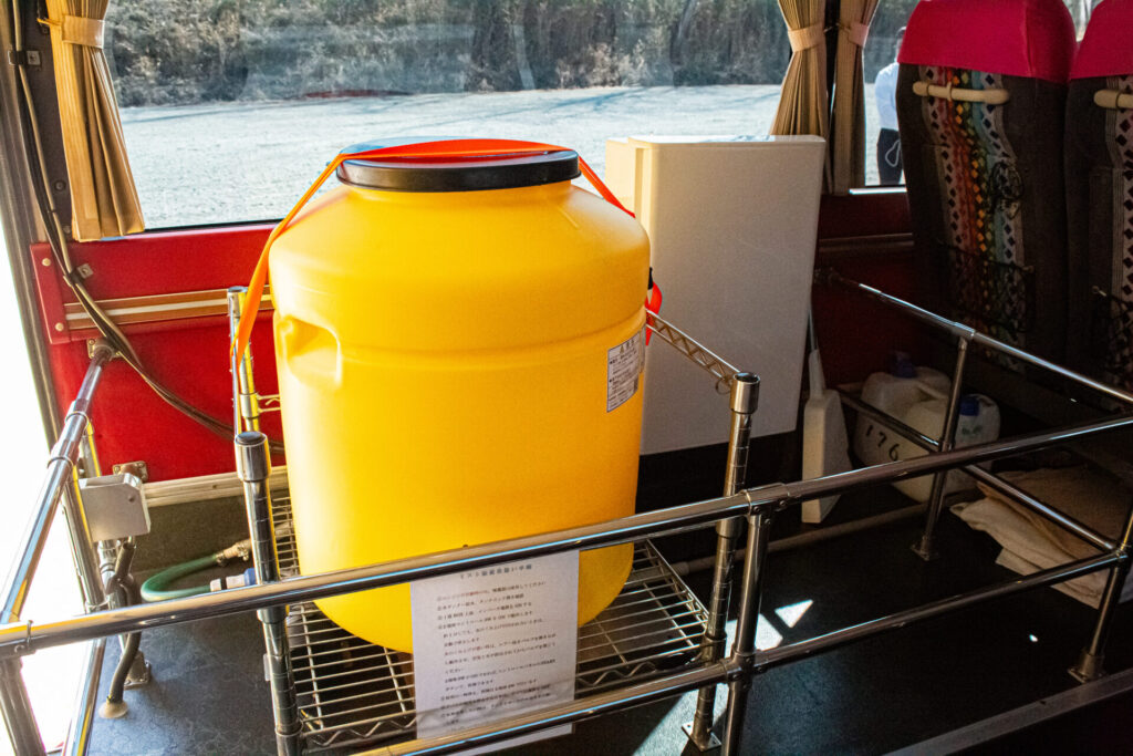夏場に2階席でミストを発生させる装置のためのタンクも1階席の部分に設置されています。