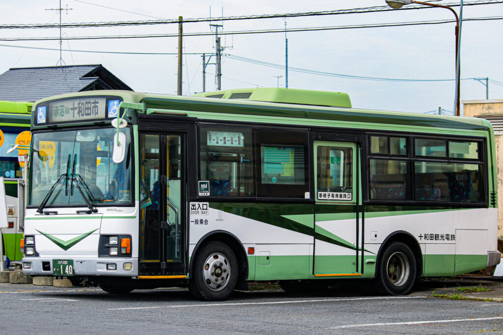 2001年からは国際興業カラーとなっておりますが、十和田観光電鉄では淡い色の国際興業バス旧塗装を採用しているのが大きな特徴です。
