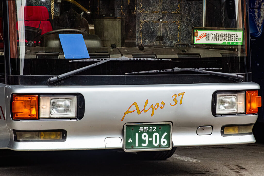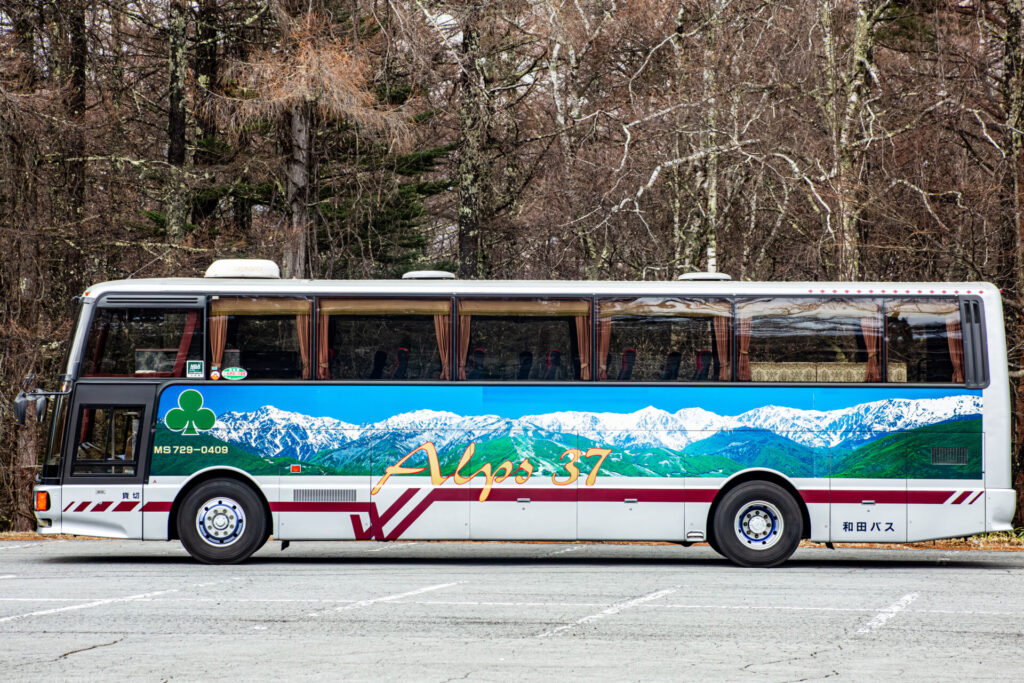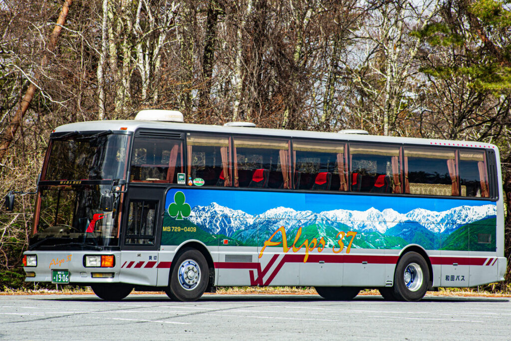 「Alps37」の相性を持つ車両で、側面には雄大な山並みがデザインされています。