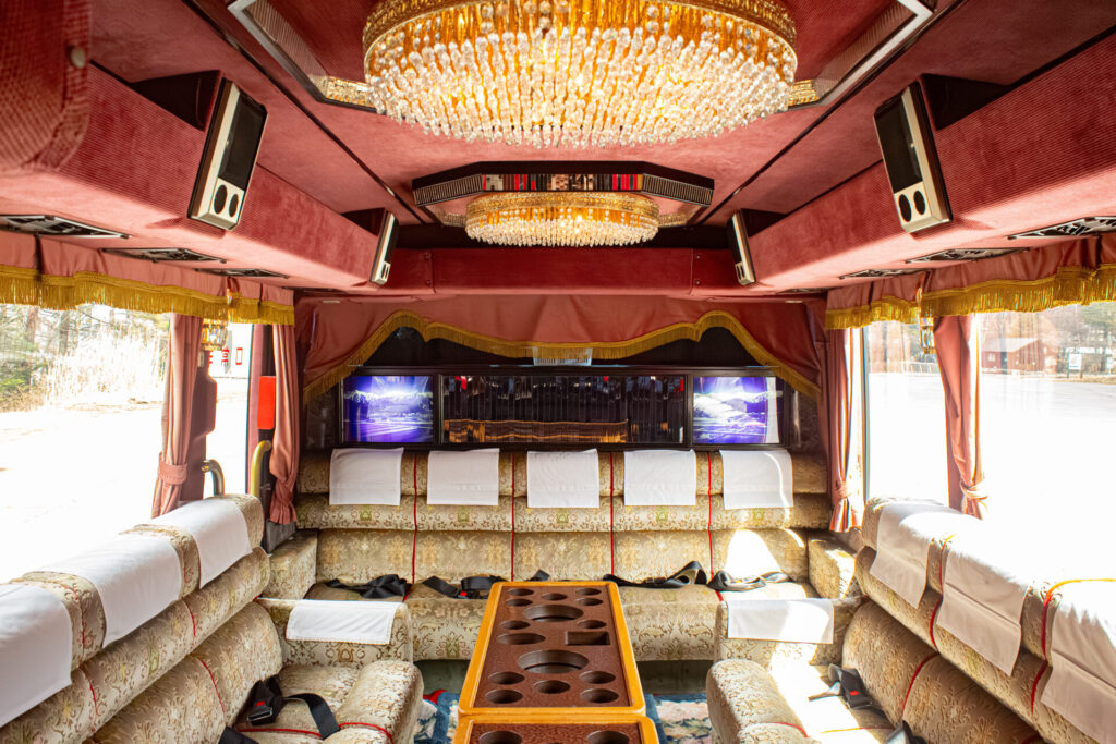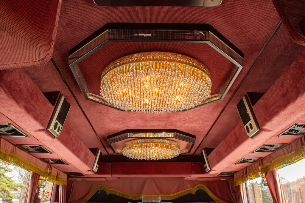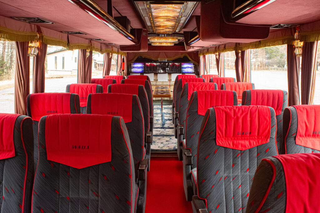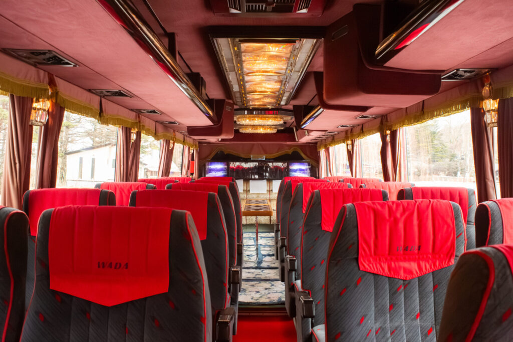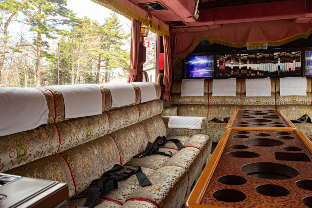 ステップを上がると、履物入れが両側に備わっており、豪華な車内空間へのこだわりを感じさせます。
