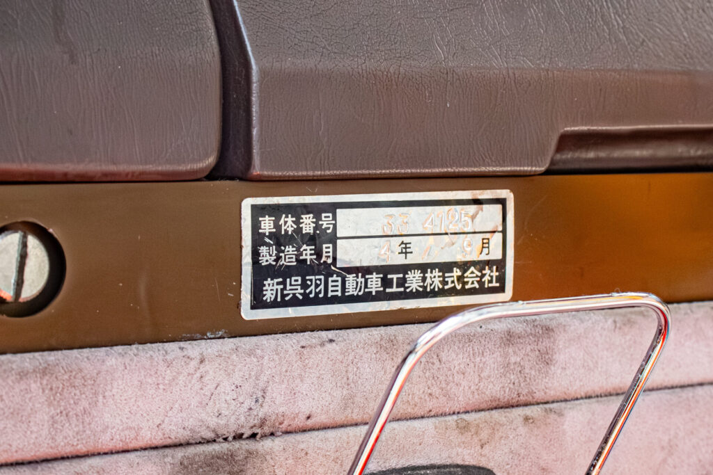 銘板には製造年月と「新呉羽自動車工業株式会社」の文字が刻まれています。